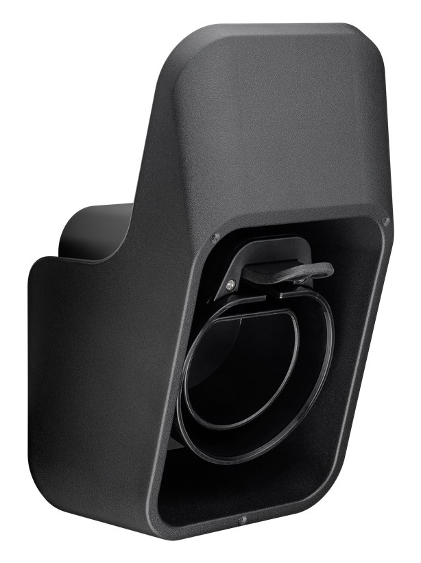 Βάση καλωδίου φόρτισης ηλεκτρικού οχήματος IEC 62196 τύπου 2, για την ασφαλή αποθήκευση του. Στερεώνεται με ασφάλεια στον τοίχο και προστατεύει το βύσμα φόρτισης παρατείνοντας της διάρκειας ζωής του.