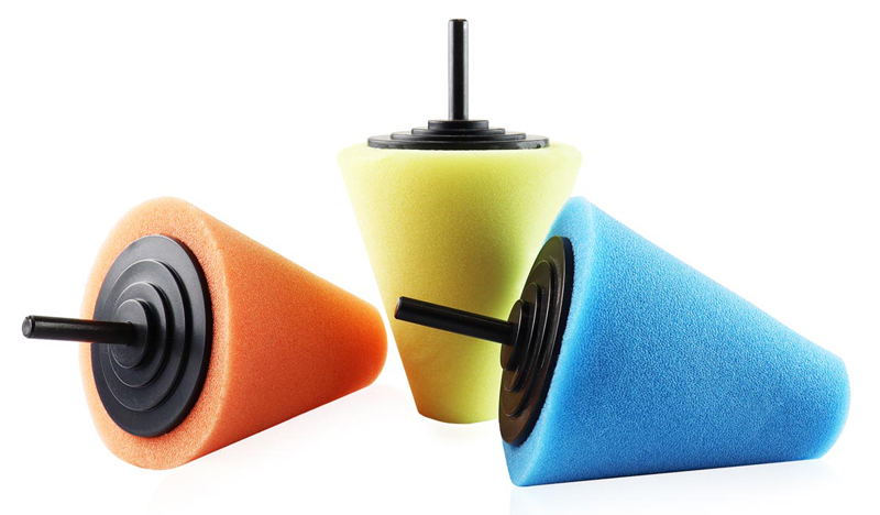 Σετ σφουγγάρια γυαλίσματος ζαντών σε κωνικό σχήμα, ιδιαίτερα αποτελεσματικά σε ευαίσθητα μέταλλα και βαμμένες επιφάνειες. Προορίζονται για χρήση με δράπανο ή βιδολόγο και το σχήμα τους τα καθιστά ιδανικά για τροχούς, φτερά και άλλα δυσπρόσιτα σημεία.