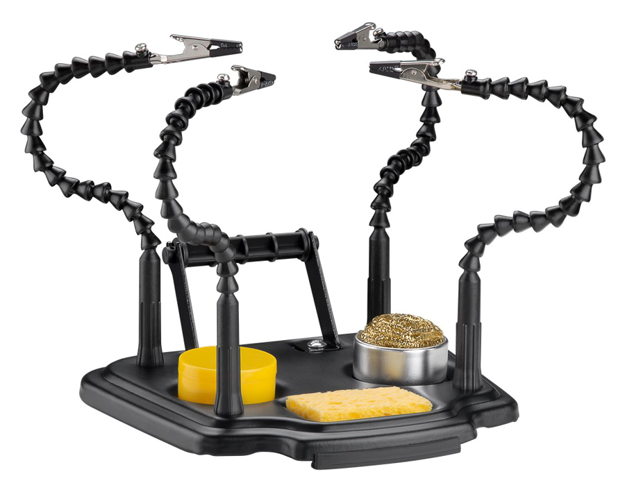 Βάση της Goobay για την στερέωση ηλεκτρονικών εξαρτημάτων όπως πλακέτες, κατάλληλη για εργασίες συγκόλλησης. Διαθέτει 4 εύκαμπτους βραχίονες με crocodile clips που προσφέρουν μεγαλύτερη ευελιξία κατά την εργασία. Το σώμα της βάσης είναι μεταλλικό, ενώ στο κάτω μέρος της διαθέτει αντιολισθητικά pads. Στην συσκευασία συμπεριλαμβάνεται σφουγγάρι, flux πάστα συγκόλλησης και συρμάτινο σφουγγάρι.