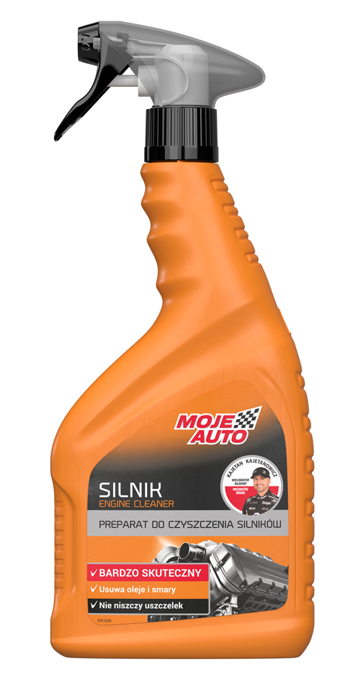 Σπρέι για τον εξωτερικό καθαρισμό του κινητήρα αυτοκινήτου από την Moje Auto. Αφαιρεί γρήγορα και αποτελεσματικά λάδια, γράσα και επίμονη βρωμιά από το μπλόκ της μηχανής.