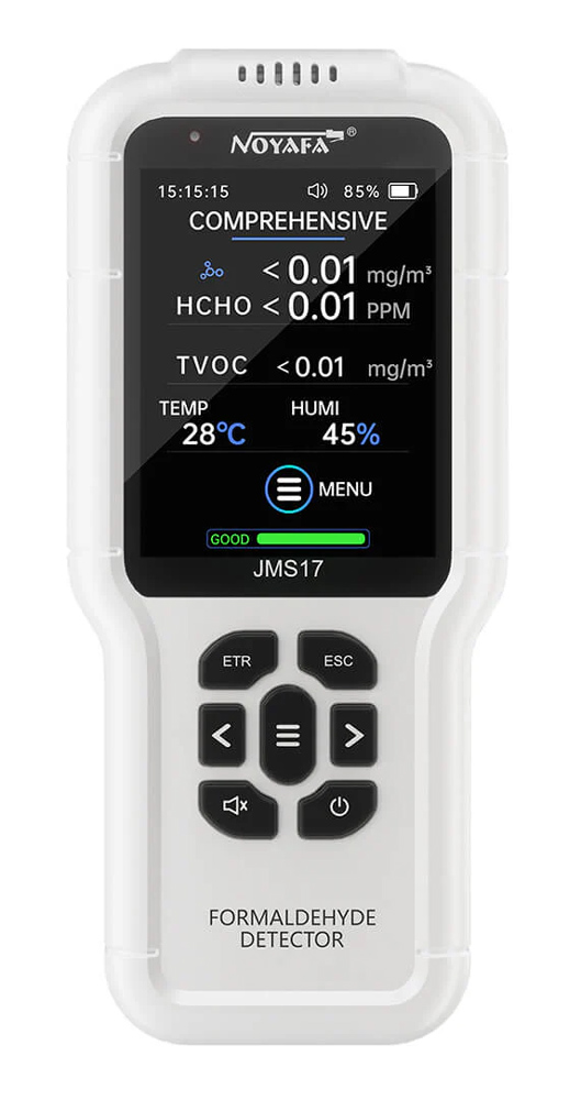 Το JMS17 είναι ένα χρήσιμο εργαλείο που μπορεί να μετρήσει ταυτόχρονα την ποιότητα του αέρα (μετρώντας τη συγκέντρωση της φορμαλδεΰδης και της οργανικής ύλης), τη θερμοκρασία και την υγρασία περιβάλλοντος.