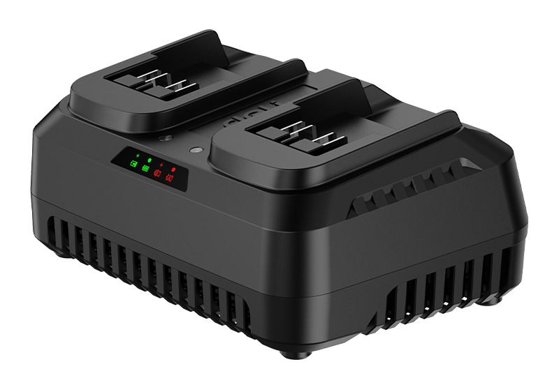 Διαθέτει δύο θέσεις φόρτισης, προσφέροντας ταυτόχρονη φόρτιση δύο μπαταριών, εξοικονομώντας χρόνο και αυξάνοντας την αποδοτικότητα στην εργασία σας.