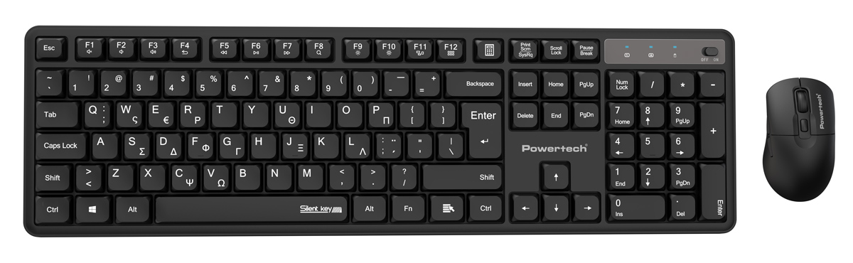 Set περιφερειακών της Powertech που αποτελείται από ασύρματο πληκτρολόγιο και ασύρματο οπτικό ποντίκι. Είναι συμβατά με συσκευές όπως desktop και laptop με Windows και MAC OS λειτουργικό.