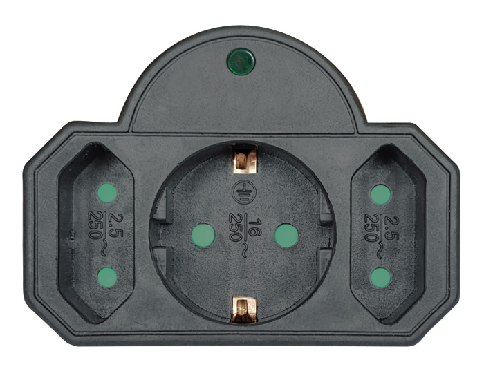 POWERTECH αντάπτορας ρεύματος PT-817 με προστασία υπέρτασης, 1x schuko, 2x euro, 16A, μαύρος