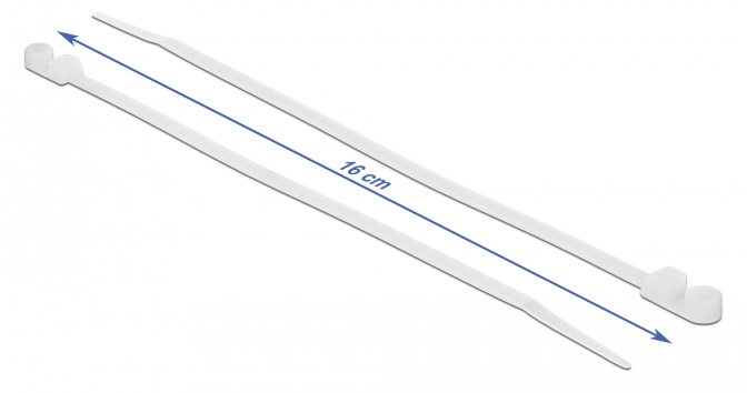 DELOCK Δεματικά καλωδίων 18944 με οπή στερέωσης, 160x4.8mm, λευκά, 10τμχ