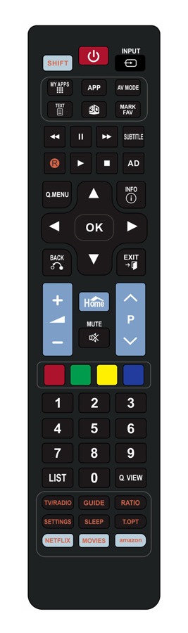 Εργονομικό χειριστήριο τηλεόρασης το οποίο υποστηρίζει όλες τις λειτουργίες της τηλεόρασης, συμπεριλαμβανομένου και του teletext. Επιπρόσθετα, εξοπλίζεται με dedicated πλήκτρα για εφαρμογές των smart TVs.