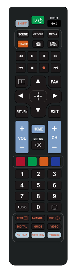 Εργονομικό χειριστήριο τηλεόρασης το οποίο υποστηρίζει όλες τις λειτουργίες της τηλεόρασης, συμπεριλαμβανομένου και του teletext. Επιπρόσθετα, εξοπλίζεται με dedicated πλήκτρα για εφαρμογές των smart TVs.