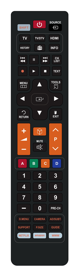 Εργονομικό χειριστήριο τηλεόρασης το οποίο υποστηρίζει όλες τις λειτουργίες της τηλεόρασης, συμπεριλαμβανομένου και του teletext. Επιπρόσθετα, εξοπλίζεται με dedicated πλήκτρα για εφαρμογές των smart TVs.