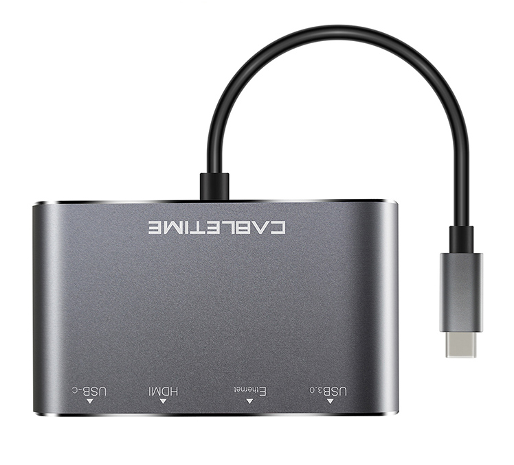 CABLETIME docking station CMHD41, 4 θυρών, USB-C, 20V/3A PD, 4K, γκρι