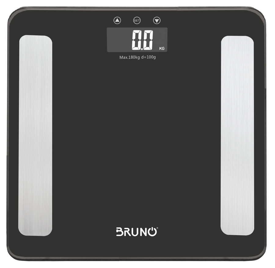 Ψηφιακή ζυγαριά της Bruno με επιφάνεια κατασκευασμένη από tempered glass και μεγάλη ευανάγνωστη οθόνη LCD. Μπορεί να υπολογίσει με εξαιρετική ακρίβεια το σωματικό βάρος, το λίπος, το νερό, την μυϊκή μάζα, την οστική μάζα, τις θερμίδες αλλά και τον Δείκτη Μάζας Σώματος (ΒΜΙ). Διαθέτει 3 μονάδες μέτρησης (kg, lb, st) με δυνατότητα μέτρησης έως 180kg και ευαισθησία 0.1kg για ακριβής μέτρηση του σωματικού βάρους.
