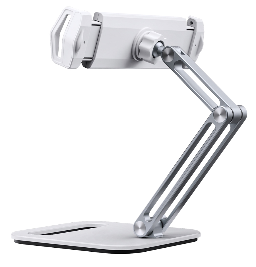 Μεταλλική βάση, συμβατή με tablet και smartphone από 4" έως 13". Διαθέτει μετακινούμενο βραχίονα που επιτρέπει να προσαρμόσετε την συσκευή σας στην ιδανική γωνία θέασης.
