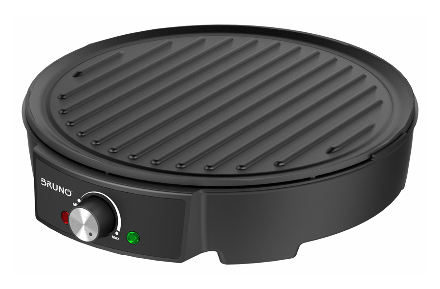 Bruno γκριλιέρα με μεγάλη αντικολλητική επιφάνεια ψησίματος 30cm και δυνατότητα ρύθμισης της θερμοκρασίας ανάλογα με το είδος του φαγητού. Διαθέτει πλάκα αλουμινίου για ομοιόμορφη κατανομή της θερμότητας και ενδείξεις λειτουργίας & ετοιμότητας για ψήσιμο.