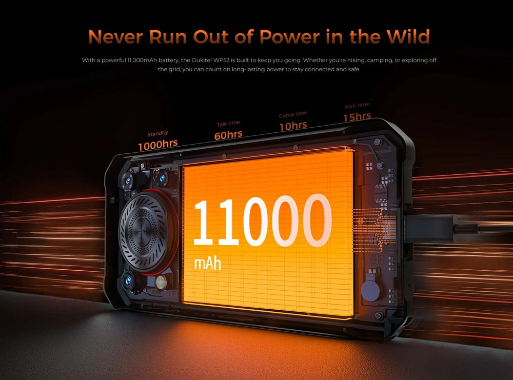 Με μπαταρία 11000mAh, το WP53 προσφέρει εξαιρετικά μεγάλη αυτονομία, που θα σας απαλλάξει από τις συχνές αναζητήσεις τροφοδοσίας.