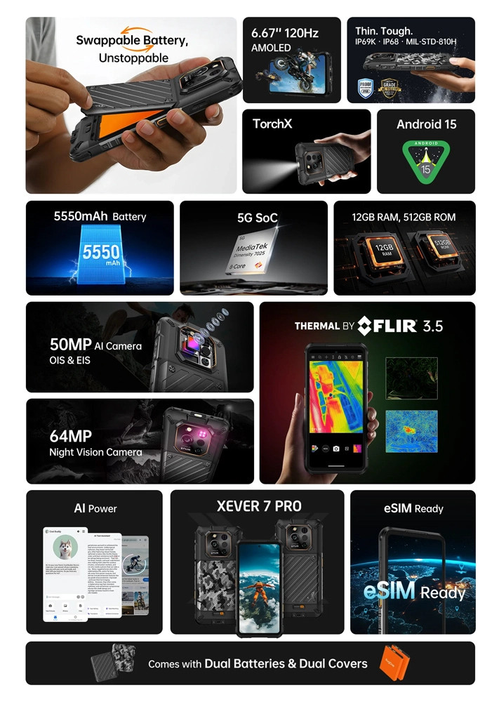 Με πιστοποίηση IP68/IP69K και πρότυπο MIL-STD-810H, το Xever 7 Pro είναι σχεδιασμένο για να αντέχει σε ακραίες συνθήκες χρήσης και περιβάλλοντα.