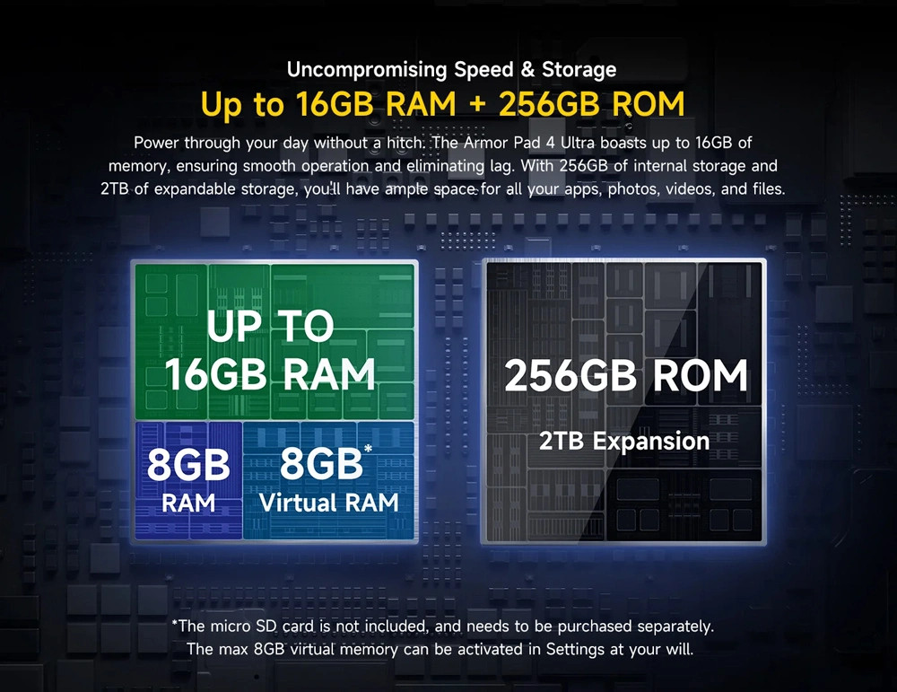 Εξοπλισμένο με επεξεργαστή 8 πυρήνων και λειτουργικό Android 14, το Armor Pad 4 Ultra προσφέρει υψηλή απόδοση για απρόσκοπτη περιήγηση στο διαδίκτυο, παιχνίδια, πολυμέσα και πολλά άλλα.