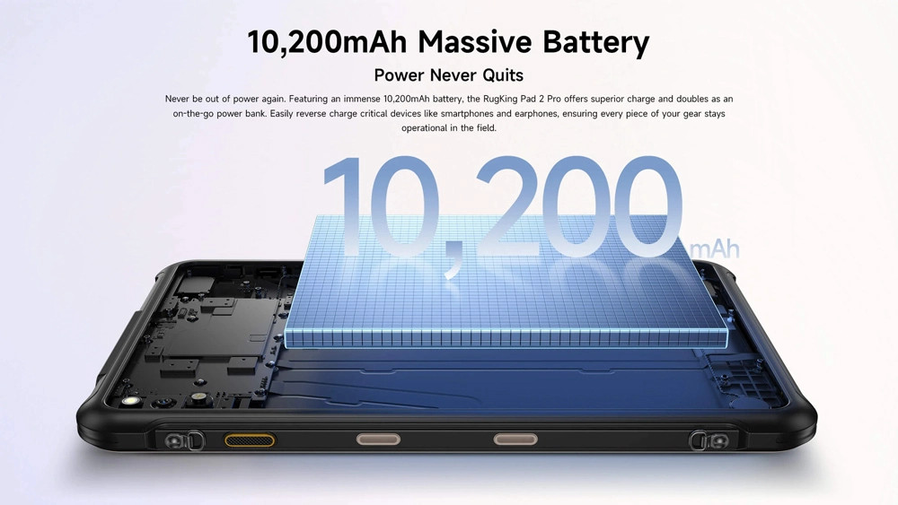 Με μπαταρία 10200mAh, το RugKing Pad 2 Pro προσφέρει μεγάλη αυτονομία, που θα σας απαλλάξει από τις συχνές αναζητήσεις τροφοδοσίας.